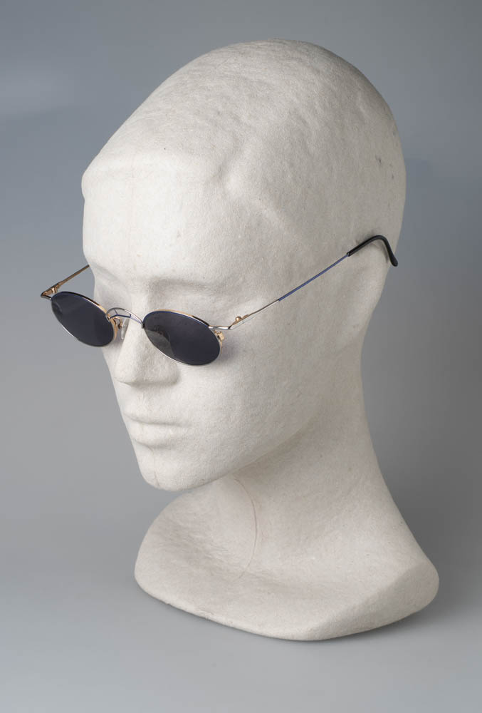 *Montura metálica dorada con lentes marrones.